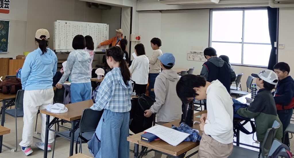 午後はみんなの自己紹介、班長さんを相談して決めたり、班のプラカードを作ったり。