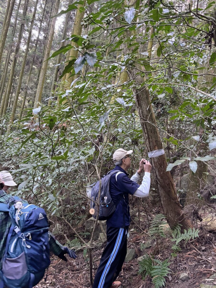 先頭リーダーの合図で、まずは2合目でひと休み。水分をとり、上着を調整して、体も気持ちもリフレッシュしました。