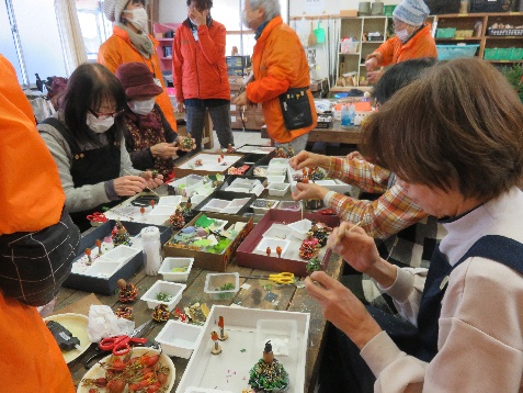 午前中は雛人形作りが行われ、一対一の指導もありました。参加者たちは皆、真剣勝負で、孫娘に喜んでもらえるかどうかを気にしながら、一生懸命に雛人形を作り上げていました。