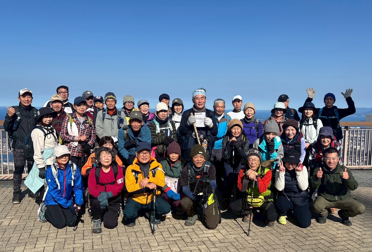 そして、皿倉山頂へ! 360度パノラマで広がる絶景は、登山で疲れた体を一瞬にして癒やしてくれます。参加者からは歓声と笑顔が溢れ、記念撮影でその感動を分かち合いました。